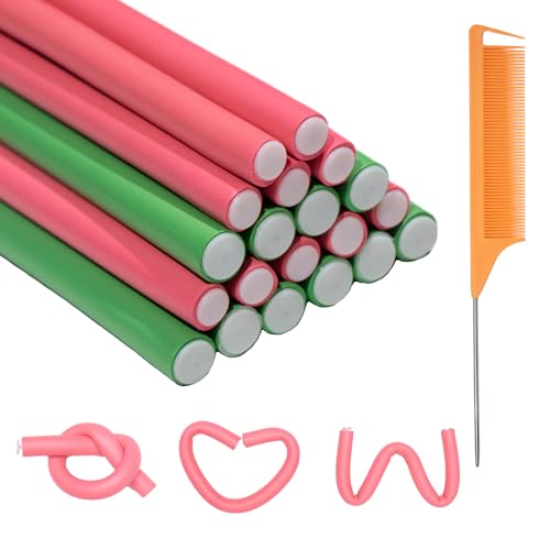 Zifeiya - Flexible Curling Rods 9.45" 40pcs Twist Foam Hair Rollers Heatless Hair Curlers Rollers with A Comb 2 Size Jumbo Foam Curlers Hair Rods for Long and Short Hair to Sleep in (0.55"x20pcs, 0.47"x20pcs)