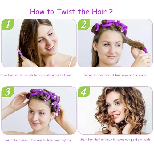 - 1)【Heatless Curling Rods】:Different with Traditional Heat Styling,Those Flexible Curlers Can Style Hair Without Heat,No Harm to Hair,Proteact Hair From Damage,Also Great Work with Synthetic Hair.
