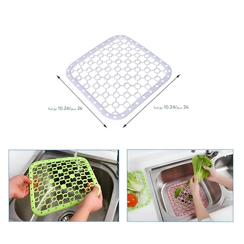 - Measuring 26 cm by 26 cm, this versatile mat fits most standard sinks, whether marble or solid surfaces. Its sleek and modern design adds a touch of elegance to your kitchen decor while serving functional purposes.