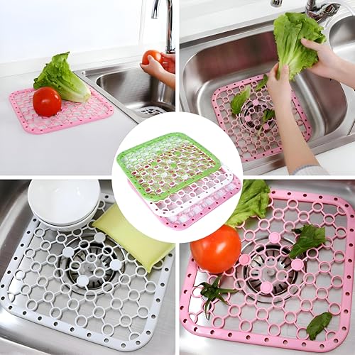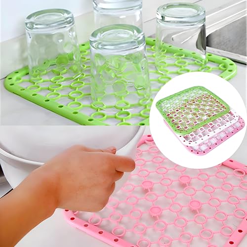 - This anti-slip plastic mat features multiple drainage holes that prevent water pooling, ensuring quick and efficient water flow to keep your sink area dry and fresh. Its durable construction simplifies cleaning and enhances safety, making it ideal for busy kitchens.