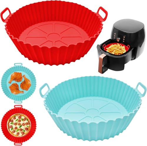 Generic - مجموعة قوالب خبز للمقلاة الهوائية من السيليكون المرن - قطعتين غير لاصقة ومقاومة للحرارة للفرن والمقلاة الهوائية، سهلة التنظيف، سيليكون امن غذائيا، مثالية للمافن والكعك والمعجنات