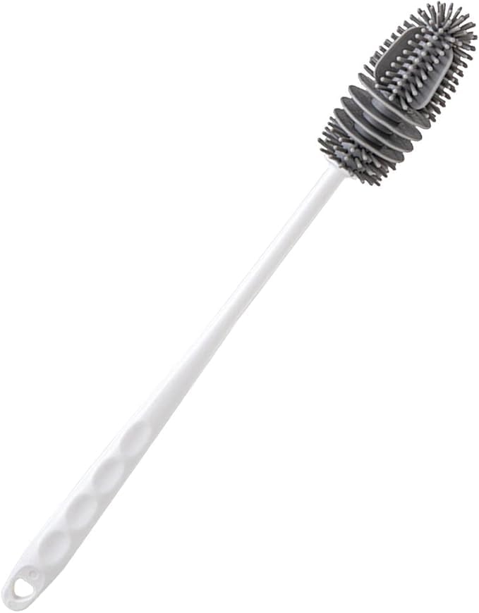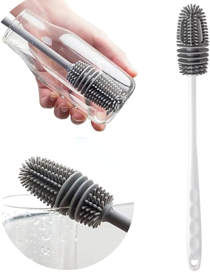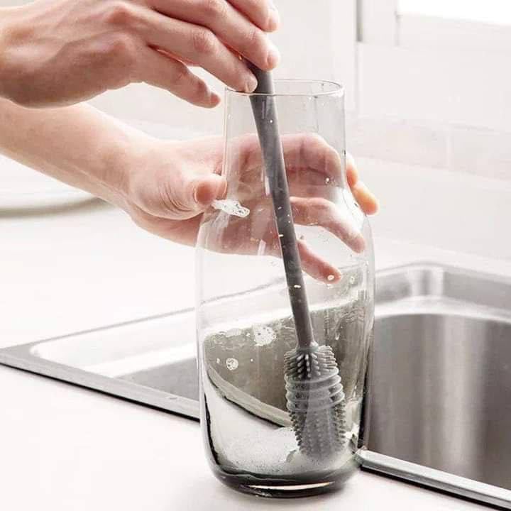 - The silicone cleaning brush is specifically designed to easily clean bottles, jars and mugs and reach tight areas inside.