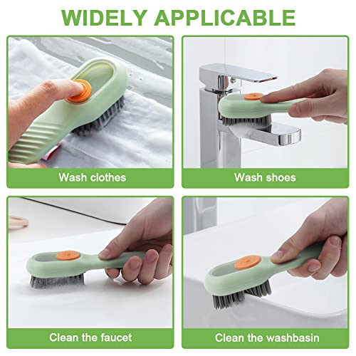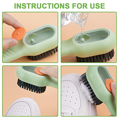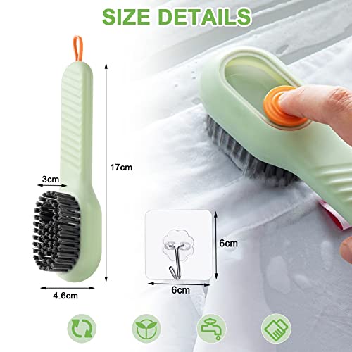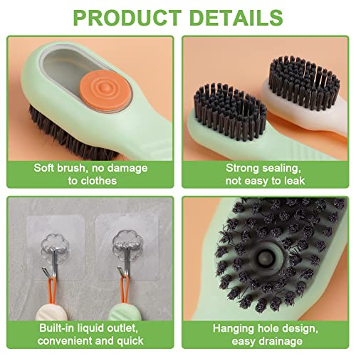 - The package includes: 3 packs of cleaning brushes with soap dispensers and 3 packs of hooks. Multifunctional shoe brush tail has a hanging silicone cord design, which is easy to hang for air dry and store. The hook allows you to hang the brush on the wall for easy storage.