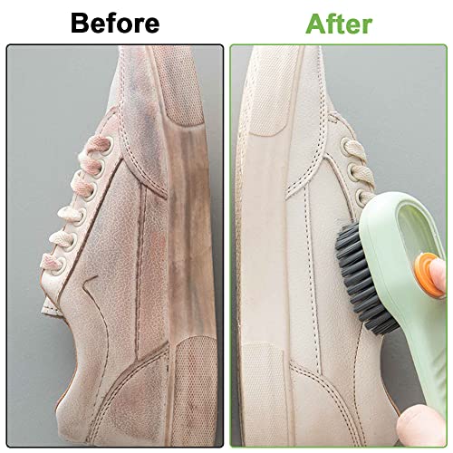 - The shoe cleaning brush has a built-in liquid outlet, which can produce rich foam and quickly soap. Strong sealing, no leakage, easy to use, no need to add liquid repeatedly. You can press a button to dispense liquid with the help of the shoe washing brush, to avoid waste and the problem of not finding the liquid.