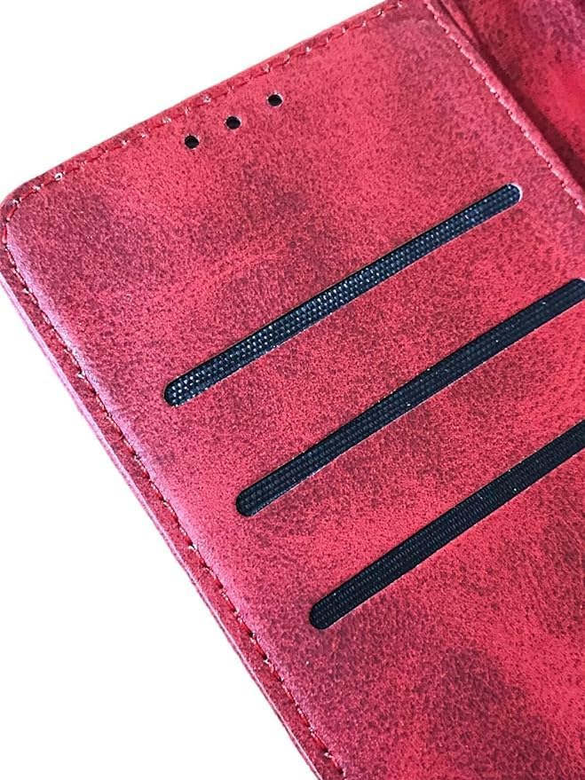 Generic - جراب موبايل جلد قابل للطي مع فتحة للبطاقات لموبايل سامسونج جالاكسي A24 - احمر حجري، محفظة