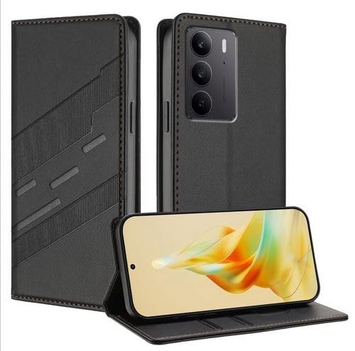 Generic - جراب حماية فيليب قابل للطي من الجلد الصناعي مقاوم للصدمات و مزود بحماية للكاميرا مع حامل بطاقات وكروت متوافق مع هاتف ريلمي سي 75 / realme c75 4g cover (black)