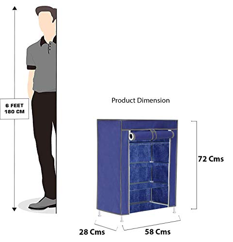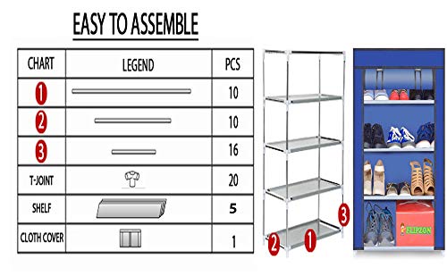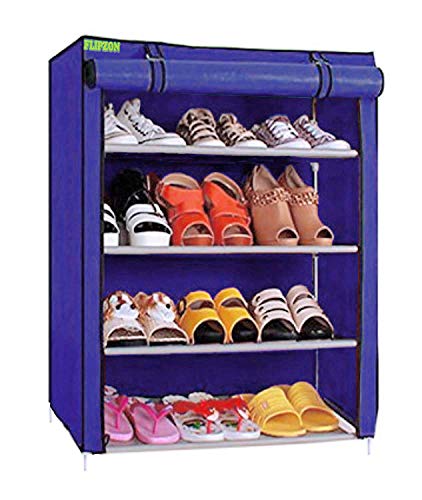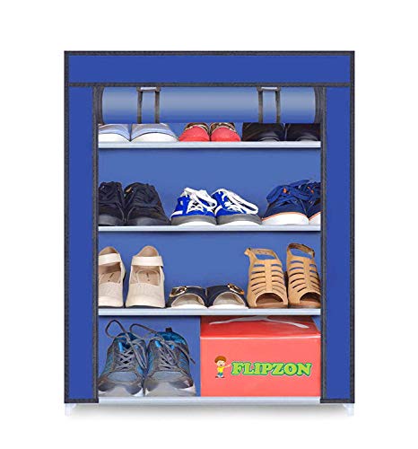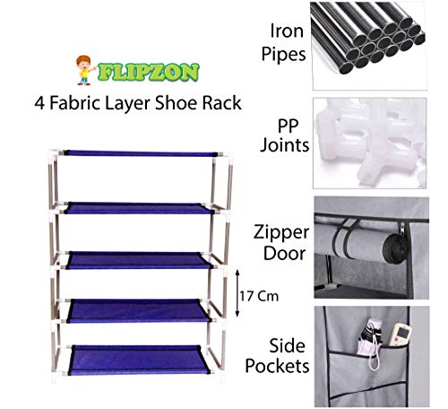 FLIPZON - جزامة من 4 طبقات، رف تخزين متعدد الأغراض مع غطاء بسوستة مقاوم للغبار، رف واسع متعدد الاستخدامات من قماش غير منسوج للأحذية والألعاب والملابس من فليبزون (4 أرفف) (أزرق) (أنابيب حديد، قماش غير منسوج)