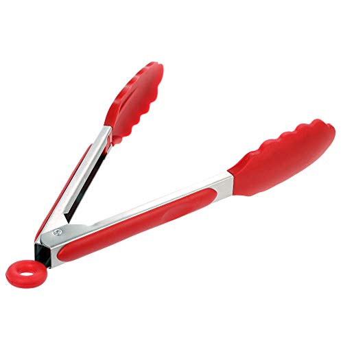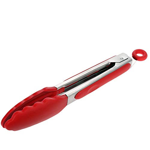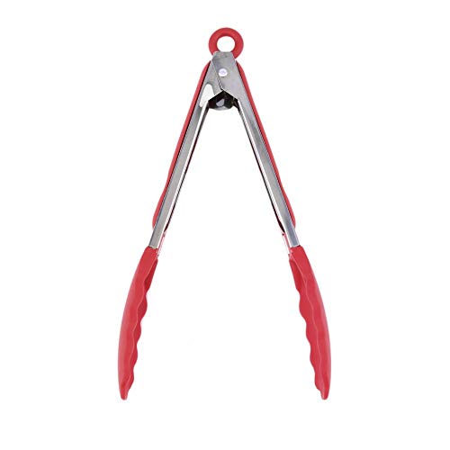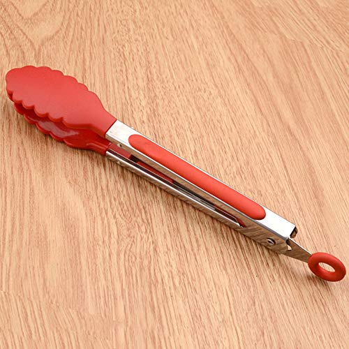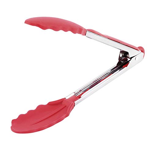 Fliyeong - 1 piece silicone food clip clamp, non-slip kitchen tongs for cooking, serving, catering, grill, buffet, salad use, red
