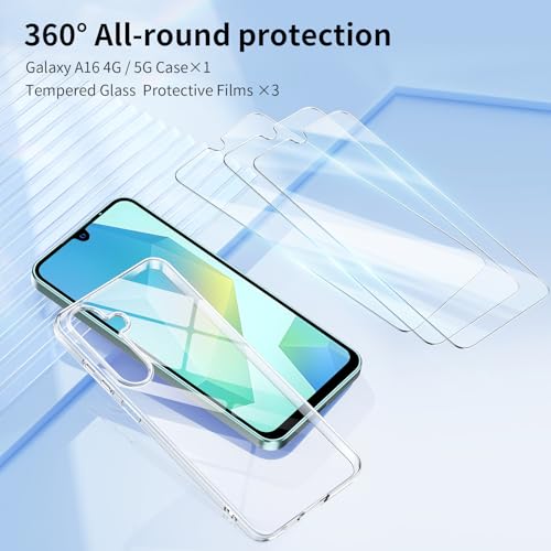FLLAO - FLLAO Cover Compatible with Samsung Galaxy A16 5G with 3 Tempered Glass Films, Ultra Thin Transparent Silicone TPU Soft Protective Case Transparent