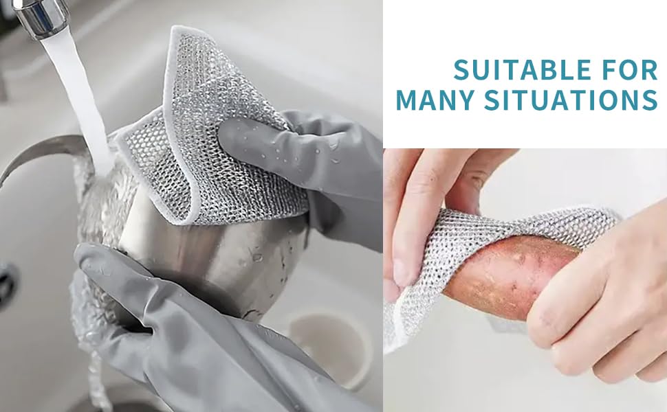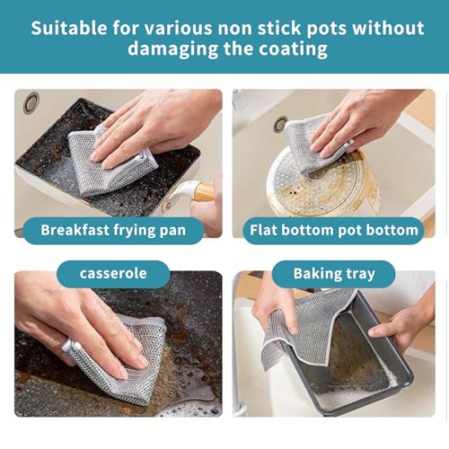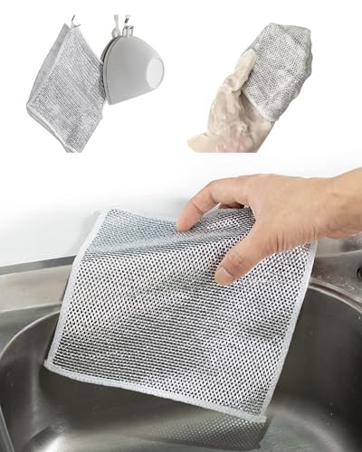 - 🌿 【FRIENDLY AND ENVIRONMENTALLY FRIENDLY, EASY TO CLEAN AND USE MULTIPLE TIMES】 No more need to use those disposable dishcloths or sponges with multifunctional non-scratch wire dishcloth, this cloth is easy to clean and can be reused hundreds of times, with excellent seam edges Craftsmanship to keep it new and lasting.