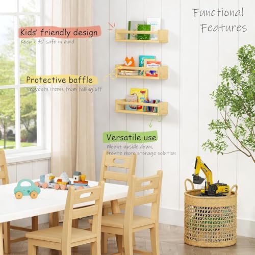 ABTRIX WITH AB - Floating Nursery Book Shelves for Wall – Set of 3 | Natural Wood Kids Bookshelf & Toy Organizer | Small Wooden Baby Book Shelf for Nursery, Bedroom, Playroom, Toddler & Child Storage | Easy Wall Mount