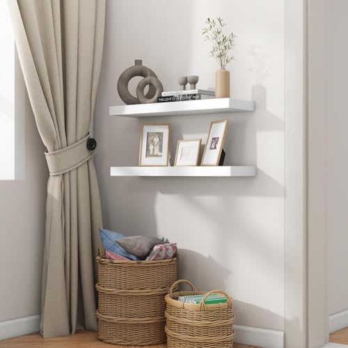 Generic - Floating Shelves 15.7 Inch Set of 2, Modern Solid Wood Wall Shelves for Bedroom, Bathroom, Living Room, Kitchen