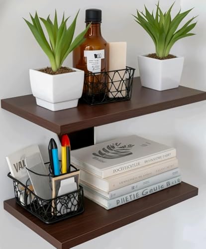 Shoper cart - Floating Wall Shelf, Book Shelf Wooden Wall Mounted, Book Shelf Wall, Wall Rack Shelf for Bedroom, Wall Mounted Bookshelf, Dark Brown, Set of 3