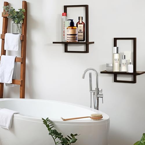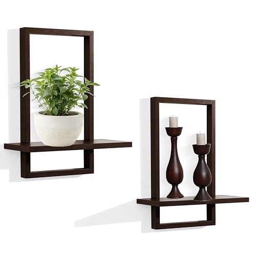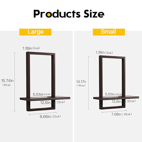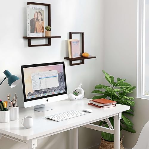FURAOMEILI - Floating Wall Shelves, Square Shelf Set of 2, Rustic Wooden Decoration for Hanging Display of Plants - Chic for Living Room, Bedroom, Bathroom or Office, Oak Frame, L+S, Walnut