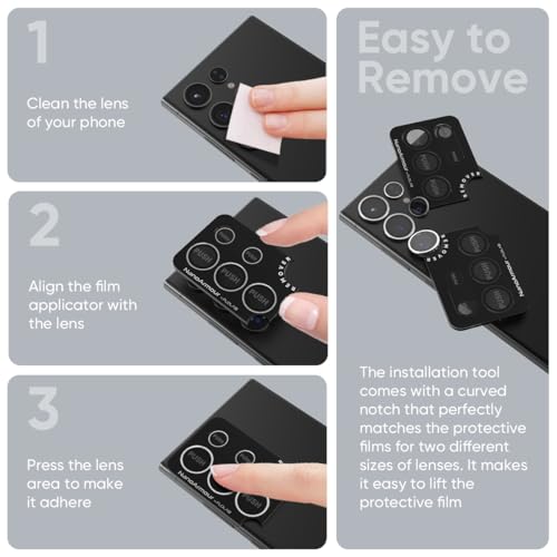 - Smudge Resistant: Built-in oil-resistant Nano Technology won't rub off as it prevents fingerprints and smudges to help keep your S24 Ultra Camera Protector clean and silky smooth.