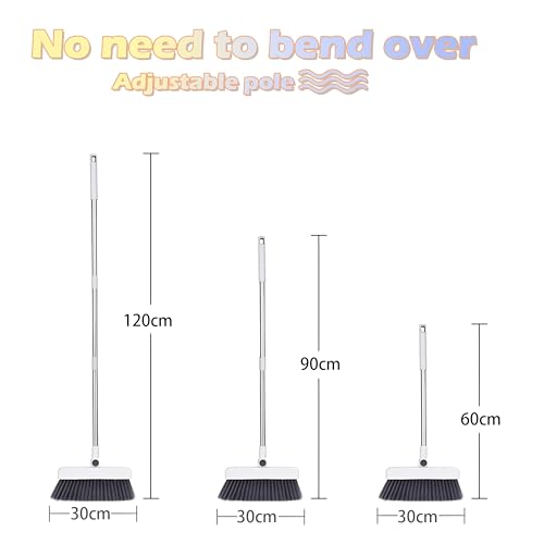 - The broom set features an adjustable handle that can be customized to your favorite height. With six interchangeable posts, you can easily adjust the handle from 60cm to 120cm, and accommodate most height. This innovative design eliminates the need to bend during grooming sessions, providing a more comfortable and comfortable experience.
