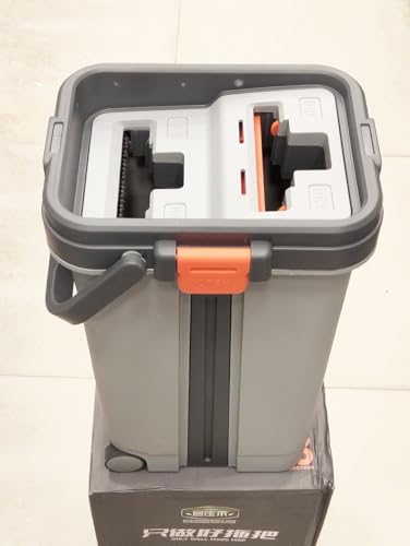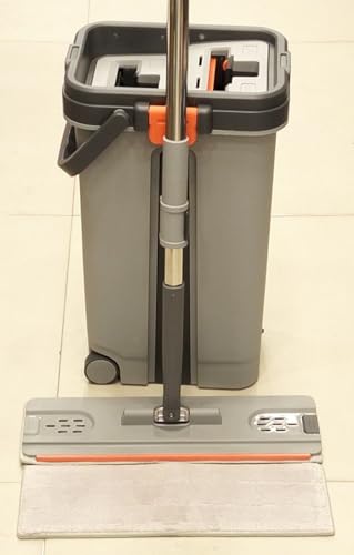 Generic - Floor Mop Set with Moving Bucket, Adjustable Handle, Integrated Cleaning System, Grey and Orange