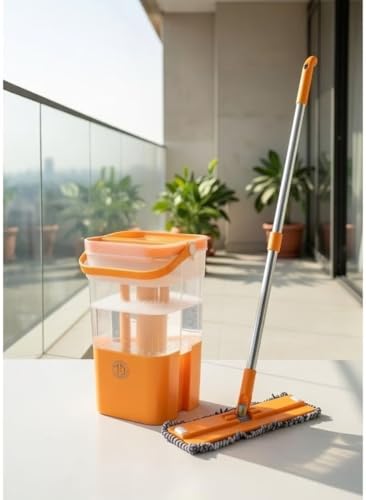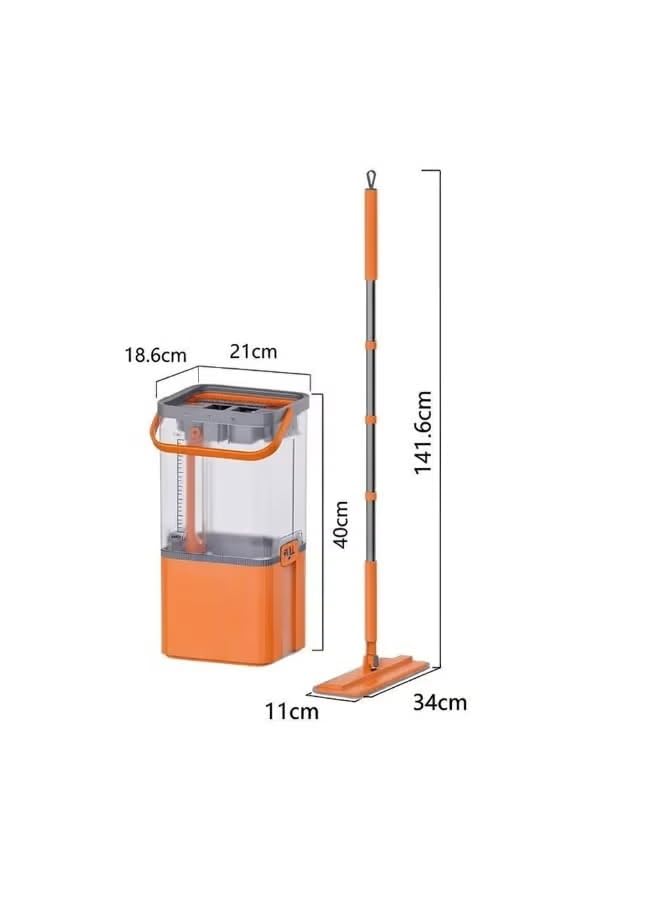 Generic - ممسحة أرضيات مع دلو تنظيف، نظام تنظيف ذاتي بطبقة مزدوجة، برتقالي ورمادي، فصل الماء النظيف والمتسخ