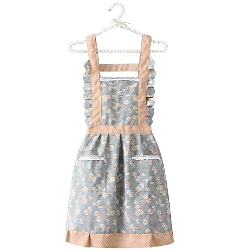 Generic - Floral Kitchen Apron- Charming Floral Kitchen Apron for Women combines rustic ruffled design with adjustable straps and pockets, perfect for cooking, baking, gardening tasks.