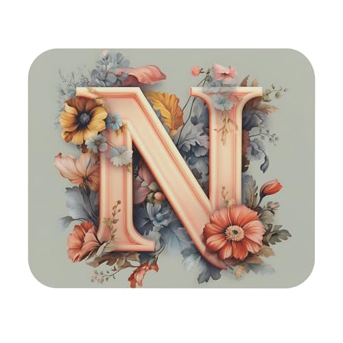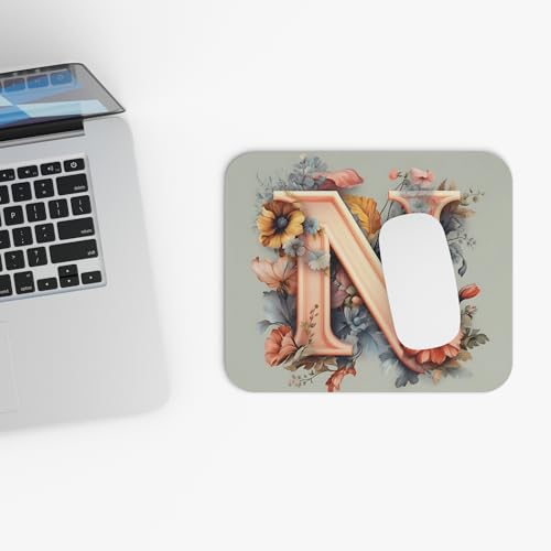 Generic - Floral Monogram Mouse Pad - Letter N | Elegant Personalized Desk Accessory Non-Slip Gaming & Office Mousepad, Smooth & Non-Slip Desk Mat for Office & Gaming, Durable Mousepad-314