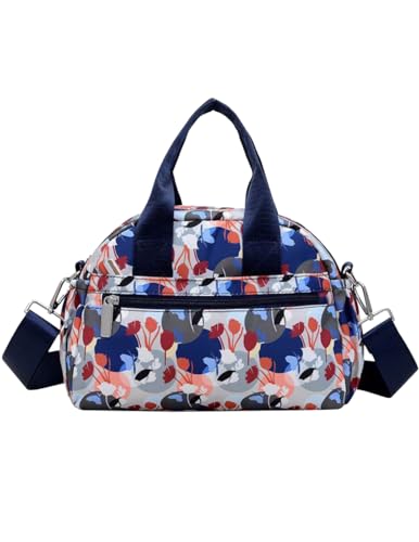 Generic - شنطة كتف كروس خفيفة الوزن بسوستة بطبعة زهور مصممة بيد مناسبة للسفر، لون أزرق كحلي