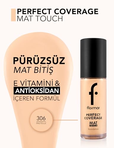 Flormar - Flormar Perfect Coverage Matte Touch Foundation 30 ml, 306 Pastelle