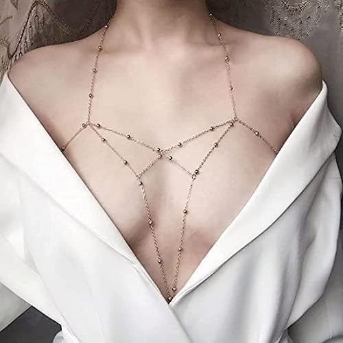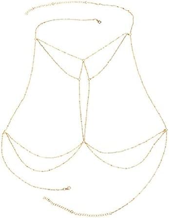 Flosy - Party Beaded Chest Chain Gold Bra Bikini Chain Harness Body Chain Summer Beach Nightclub Jewelry Adjustable for Women and Girls