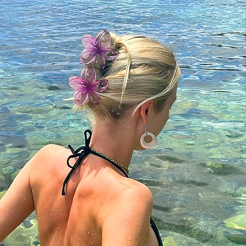 - 🩱【Unique Clear Flower Finish with Bright Summer Colors】The hair clips are a great way to jazz up any outfit or add a pop of color. You will make a statement and get many compliments with these super cute flower hair clips. The claw clips for thin hair will bring you more trendy and cheerful colors into your outfits and dailylife. These flower claw clips are so unique and whimsical. The flower hair clips for women are fun to wear and nice gifts.