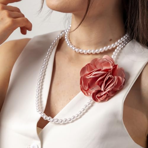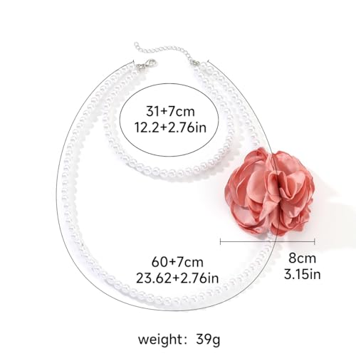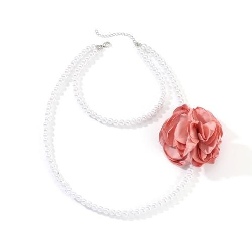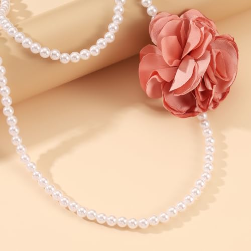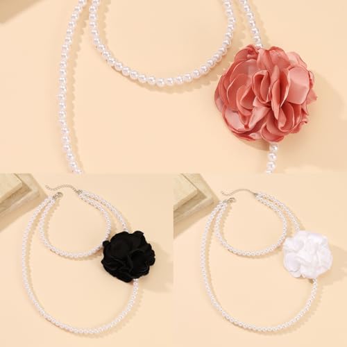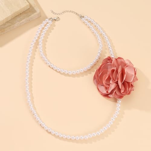 Bestleey - Flower Pearl Necklace Vintage Camellia Charm Choker Necklace Multilayer Pearl Necklaces Adjustable Flowers Necklaces Choker Prom Flower Necklace Jewelry for Women
