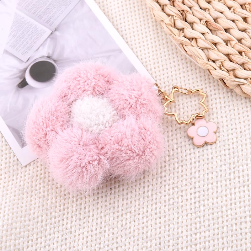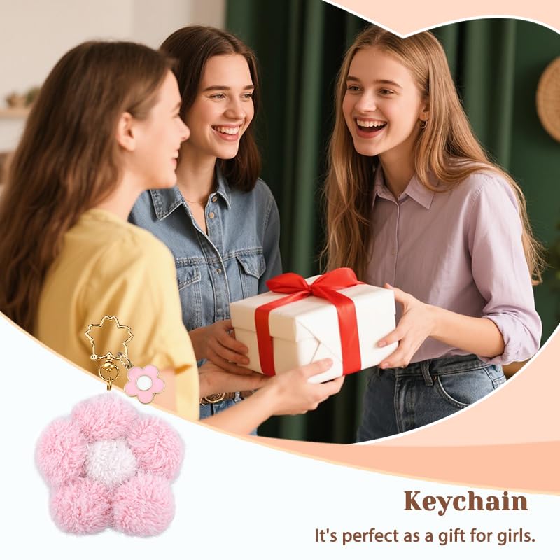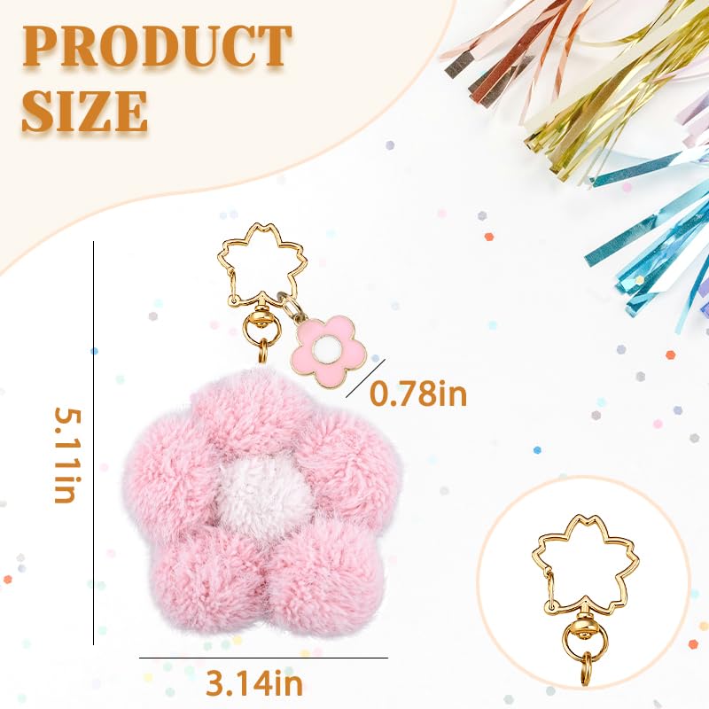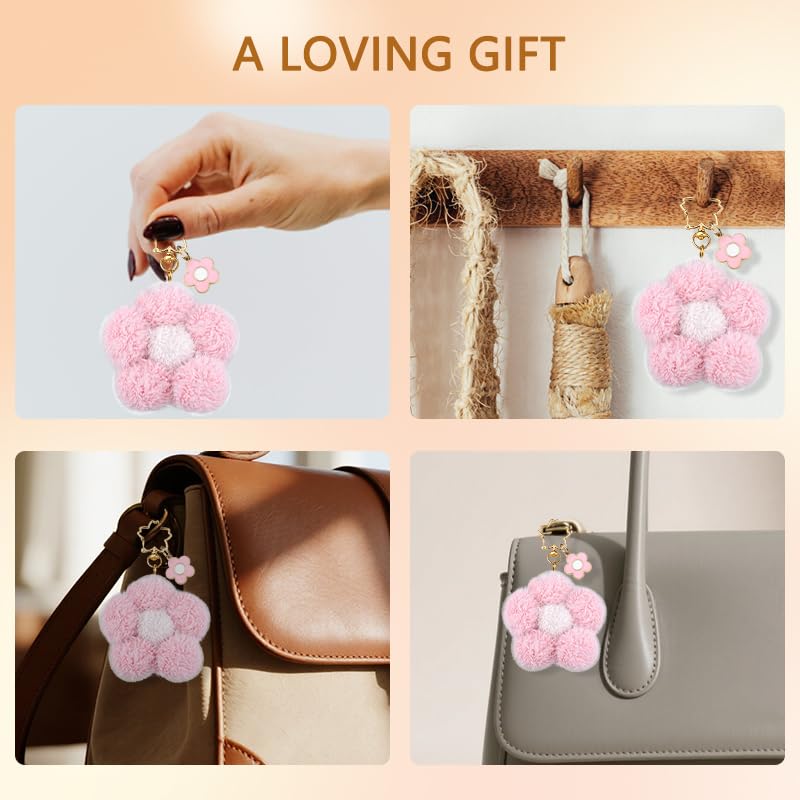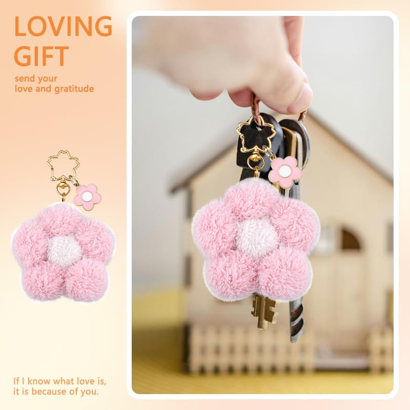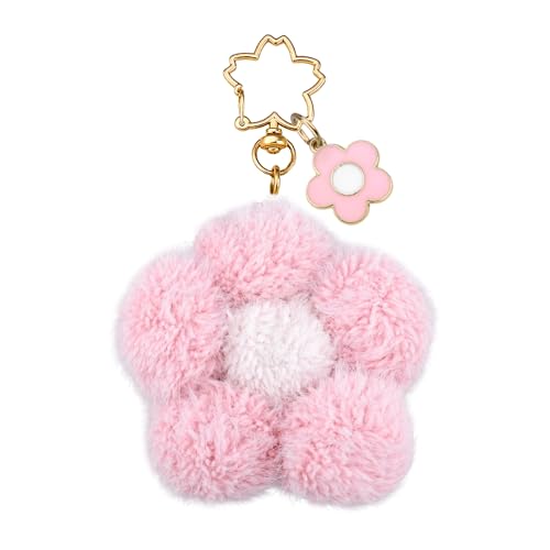 Xiyantiji - Flower Plush Keychain for Girls Women Pink Yellow White Fluffy Flower Charms for Handbags Purses Backpacks Fuzzy Accessories