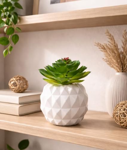 - 1️Artificial flower vase with elegant round design adds a natural and chic touch to any home or office decor.