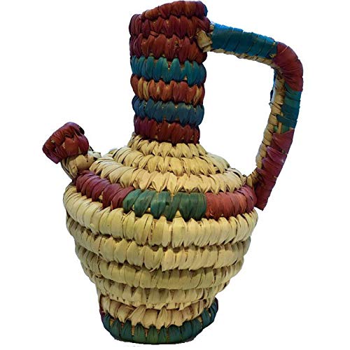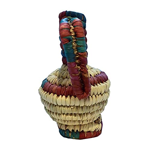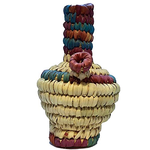 - مزهرية او فازة للزهور مزخرفة بيد مصنوعة من الخوص صناعة يدوية