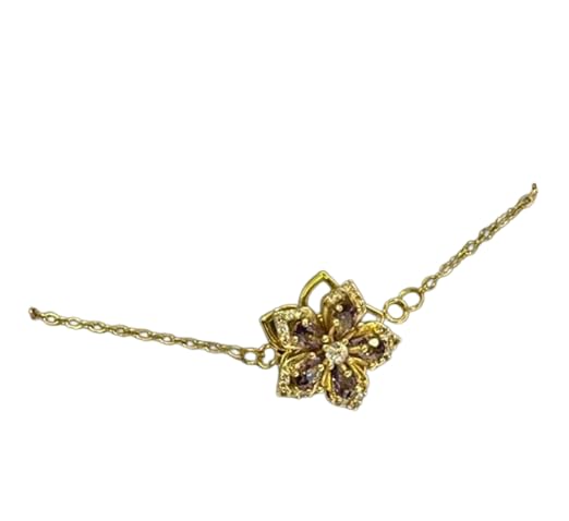 Generic - Flower with Spinning Flowe r Bracelet Crystal Accents, Gold Plated, Purple,
