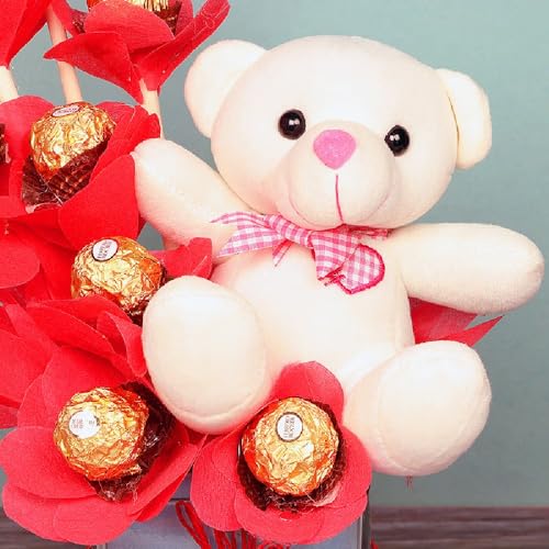Floweraura - FlowerAura Decorative Bunch Of Fresh 8 Ferrero Rocher Chocolate Bouquet In Box With Cute Teddy Bear Valentine's Day Gifts For Girlfriend, Boyfriend, Husband & Wife (Same Day Delivery)