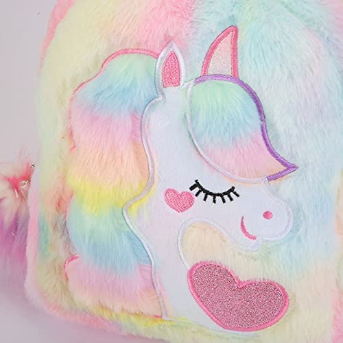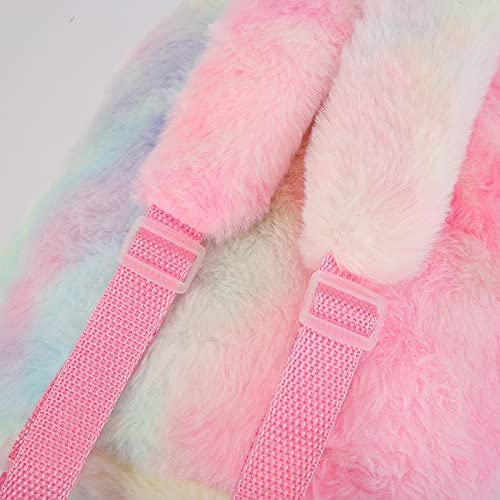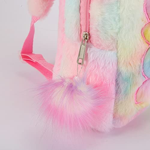 WVHTHVW - Fluffy Backpack Rainbow Cute Plush Bag with Purse or Fuzzy Notebook & Pom-Pom Pen Soft Toy Stylish School Supplies Girl’s Dream Gift Diary Kids Toddlers, Colourful