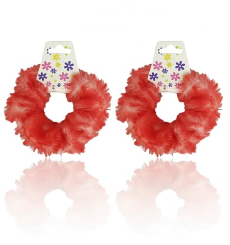 Generic - Fluffy Faux Fur Hair Scrunchies, MultiColor, Pack of 2, Elastic Hair Bands for Women and Girls (Red)
