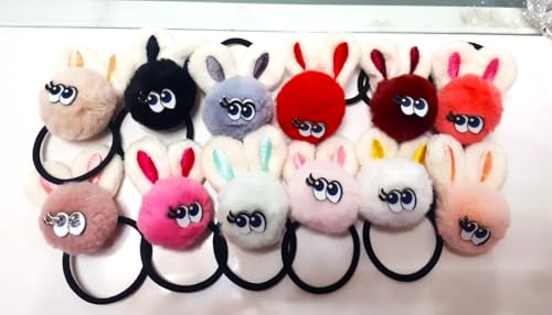 Generic - Fluffy Rabbit with eyes Hair Ties – 12 Pieces in Colorful Styles for Girls & Women