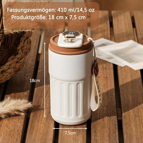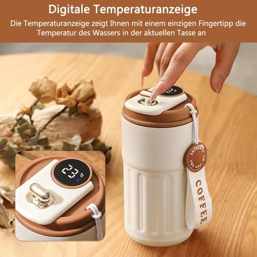 - Thermos Mug with Temperature Display ❄️ - Built-in temperature display on the lid instantly shows you how hot or cold your drink is. Perfect for the ideal drinking temperature of coffee, tea and more.