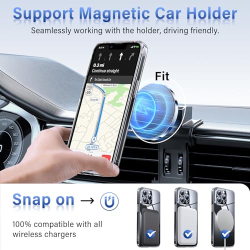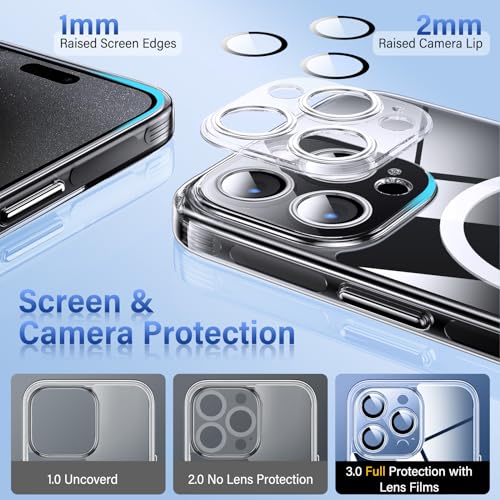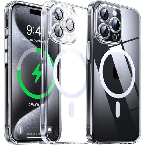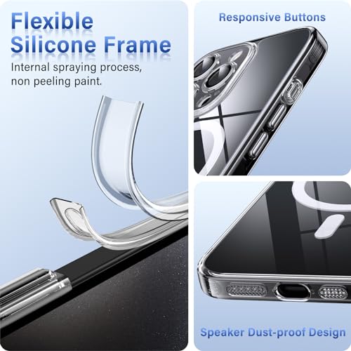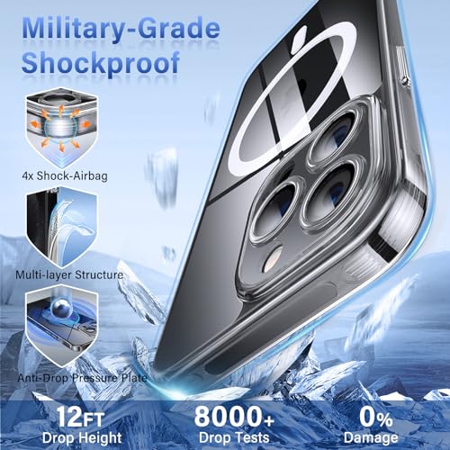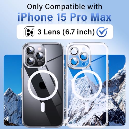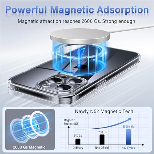 Flyzoo - Clear Magnetic Case for iPhone 15 Pro Max (6.7'') Compatible with MagSafe & Camera Protector, [Non-Yellowing] [Shockproof & Antiscratch Protection] Hard Transparent Cover with Silicone, Clear