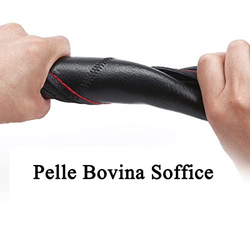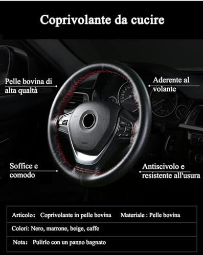 - 【Genuine Cowhide Leather】The product is made of genuine cowhide leather and thanks to the selected material, the steering wheel cover is soft and breathable, giving you a luxury and elegant look, truly a beautiful car decoration. As far as cleaning is concerned, simply remove the dirt with a wet cloth.
