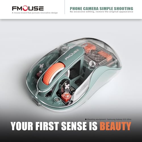 FMOUSE - Wireless Transparent Mouse, Dual Bluetooth, 2.4GHz with USB & Type-C Two Receiver, 2400 DPI, Laptop PC Silent Mouse with RGB Lights Compatible with Windows/macOS/Phone (Green)
