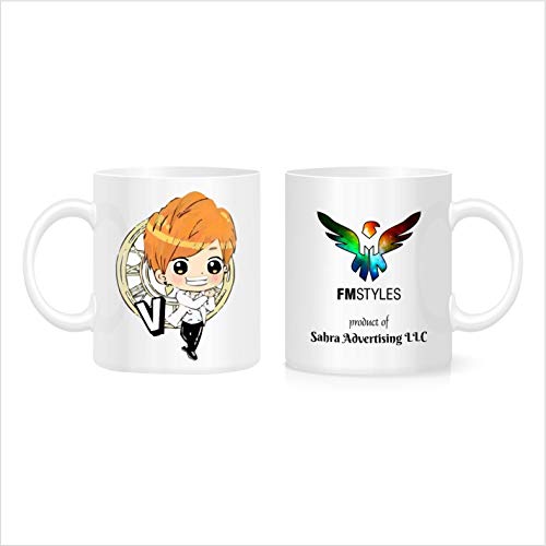 FMstyles - مج ابيض بطبعة كرتونية لشخصية المغني في من فرقة بي تي اس من اف ام ستايلز، موديل (FMS363)، سيراميك