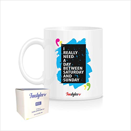 FMstyles - مج للقهوة بطبعة «I really need a day between sat and sunday» من اف ام ستايلز، FMS271، سيراميك