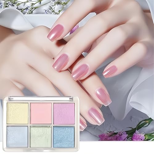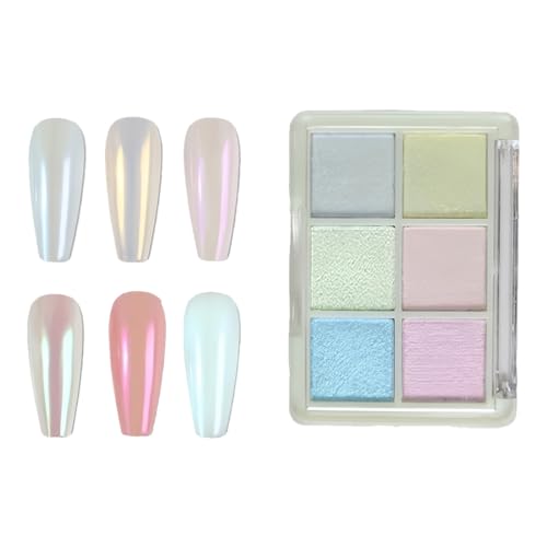 - محتويات العبوة: 1 × لوحة لامعة للأظافر مع مسحوق أظافر لؤلؤي بـ 6 ألوان و3 أدوات توزيع مزدوجة الأطراف.