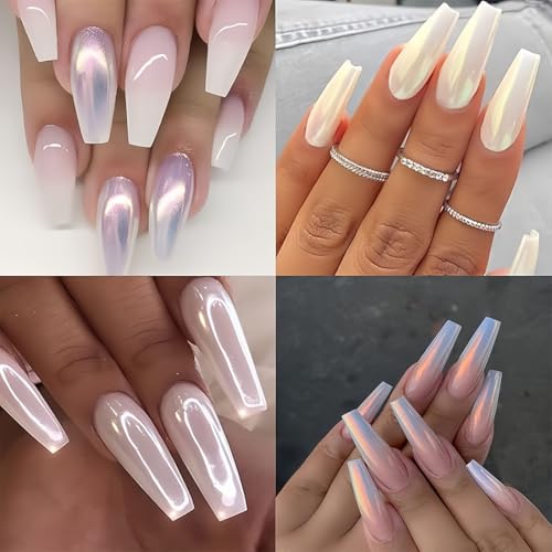 FMYODWU - بودرة أظافر لؤلؤية بتأثير الكروم بستة ألوان، جليتر فن الأظافر بتأثير مراية عاكس، بودرة بتأثير اللؤلؤ لأظافر بنمط الدونات الزجاجية، زينة أظافر من FMYODWU