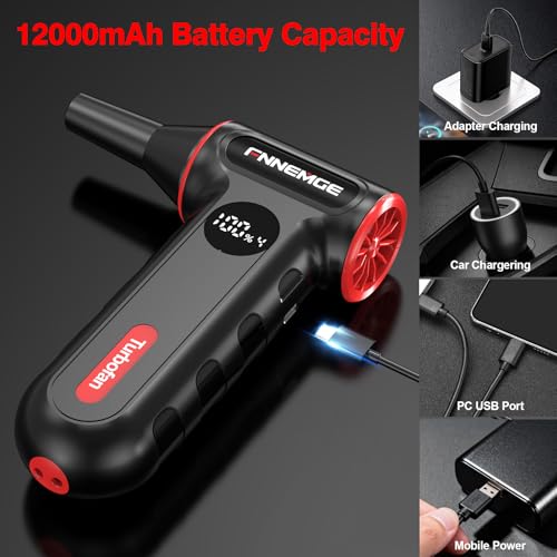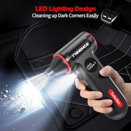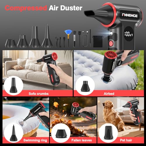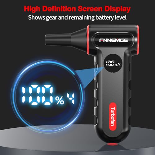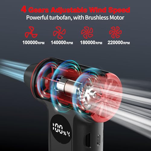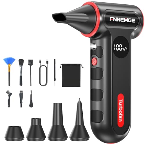 FNNEMGE - منفضة هواء كهربائية 220000 دورة في الدقيقة، منفاخ صغير قابل للتعديل بـ4 ترس، لاسلكي، شحن سريع، مع ضوء LED وشاشة عرض مناسبة لازالة الغبار في الكمبيوتر والكيبورد والسيارات والاماكن