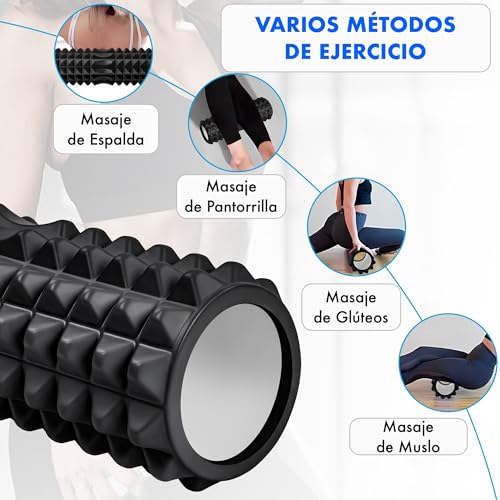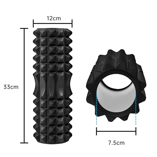 T-LOVENDO.ES - Foam Roller for Muscle Massage | Textured Foam Roller for Back, Legs and Yoga | Myofascial Release and Stretching | Ideal Post Workout | High Density 12 x 33 cm