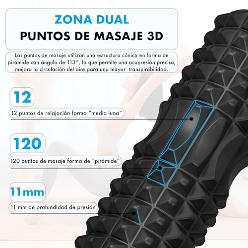 - TEXTURED ROLLER FOR DEEP MASSAGE: Designed with 3D Dual-Zone zones that simulate manual massage pressure.