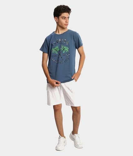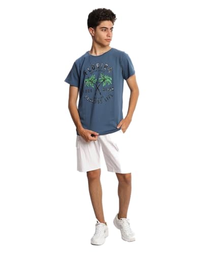 Focas - Focus Boys By New Cotton T-Shirt Big Florida Palm -T30482-Darkblue