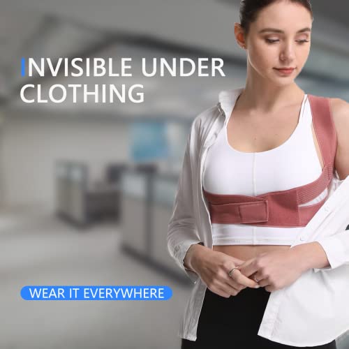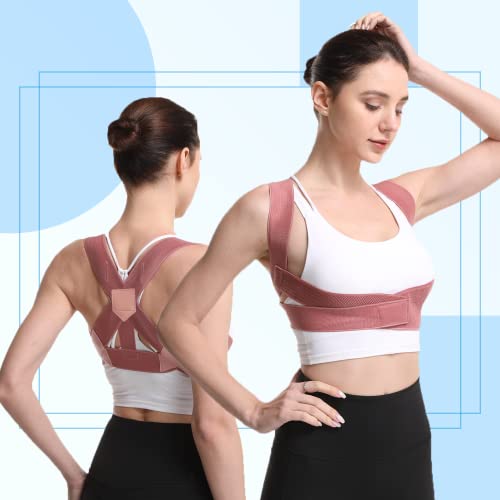Focuswell - Posture Corrector for Women - Adjustable Upper Back Brace Spine Straightener Back Support Breathable Body Corrector for Shoulder, Pain Relief, Neck, Clavicle (L-XL, Pink)